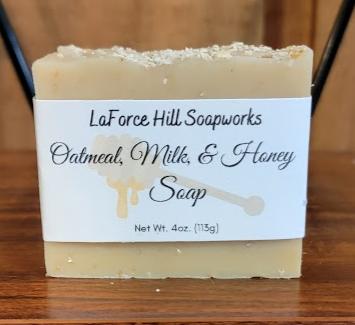 Indulge your skin in the nourishing embrace of our Oatmeal, Milk, and Honey Handcrafted Soap from LaForce Hill Soapworks. This luxurious soap combines the comforting warmth of honey with the soothing properties of oatmeal and the creamy richness of milk for a truly pampering experience.
