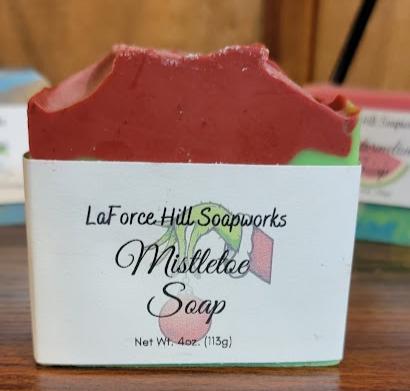 Celebrate the magic of the season with our Mistletoe Handcrafted Soap from LaForce Hill Soapworks. This festive soap brings the crisp, evergreen scent of mistletoe into your daily routine, evoking the warmth and cheer of the holidays.